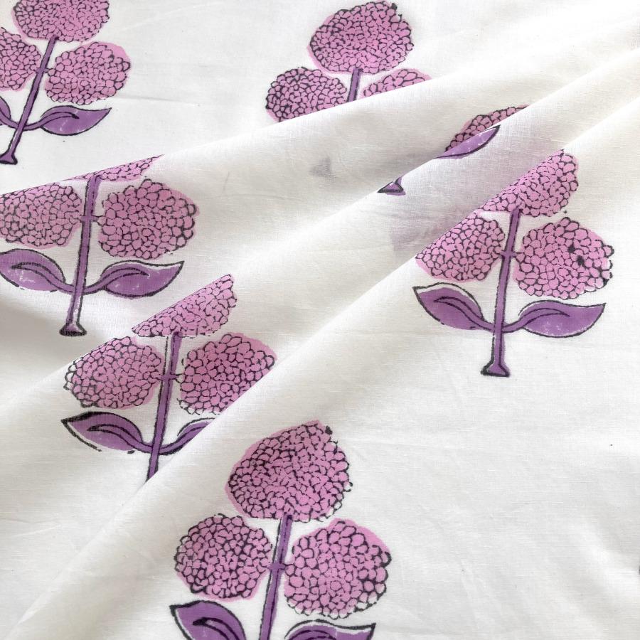 インド ブロックプリント生地 [50cm単位] Sanganeri 花畑ピンク系 on ホワイト MT花 IF0299